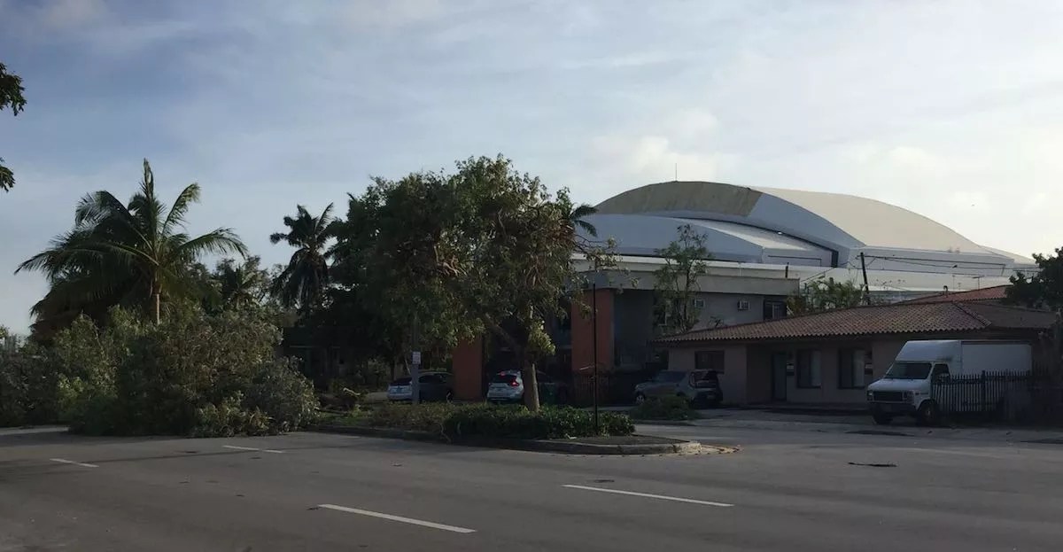 10:30 a.m. Marlins Park took a hit from Hurricane Irma. Photos from the scene show a sizable piece of the roof’s siding blown off.