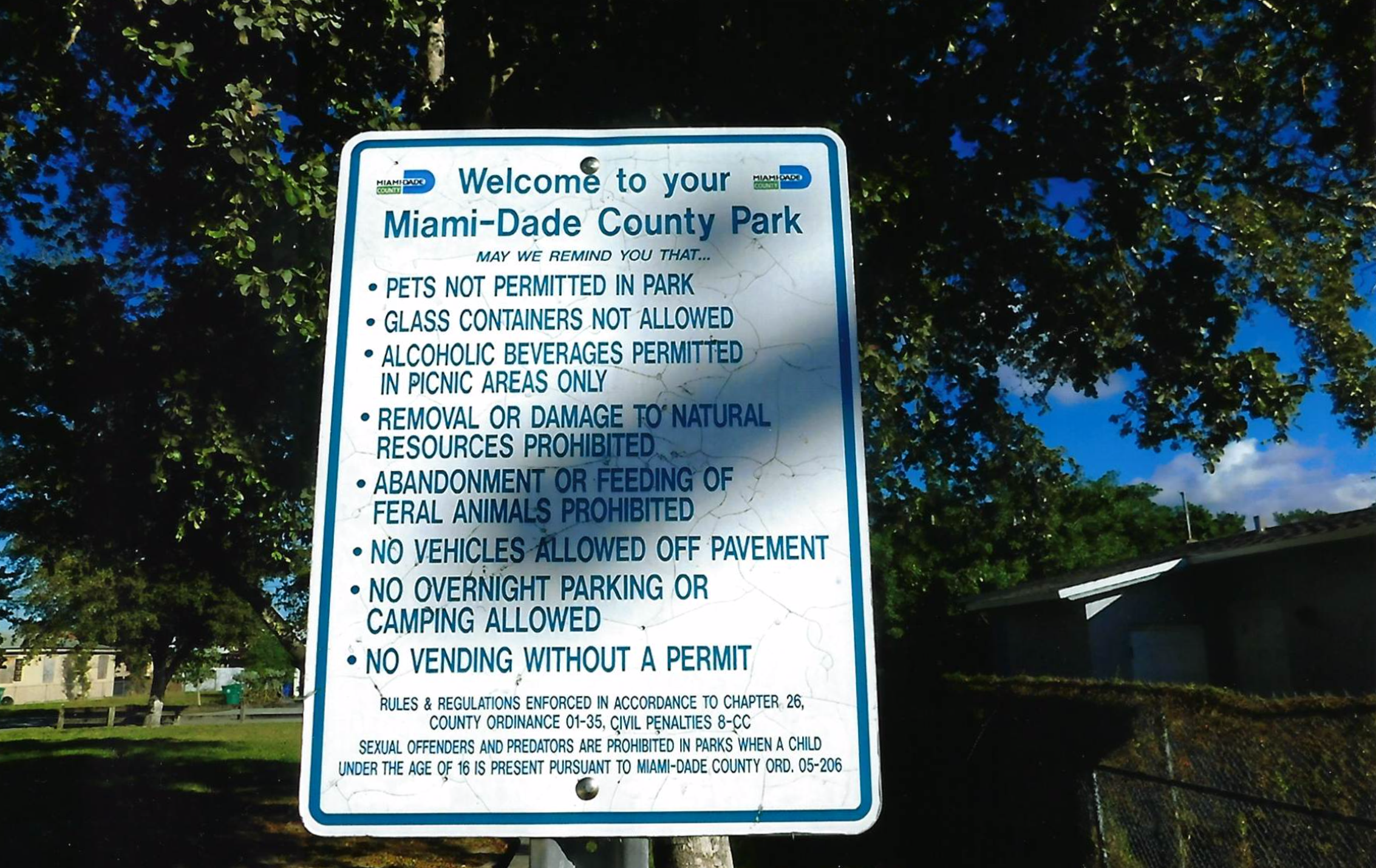 As the suit notes, Miami-Dade County’s own signage didn’t clearly explain the time the park closed. Williams, Julien-Riou’s lawyer, included a photo of the rules posted at Alonzo Kelly Park, which is located at NW 14th Avenue and 67th Street. It doesn’t list a closing time.