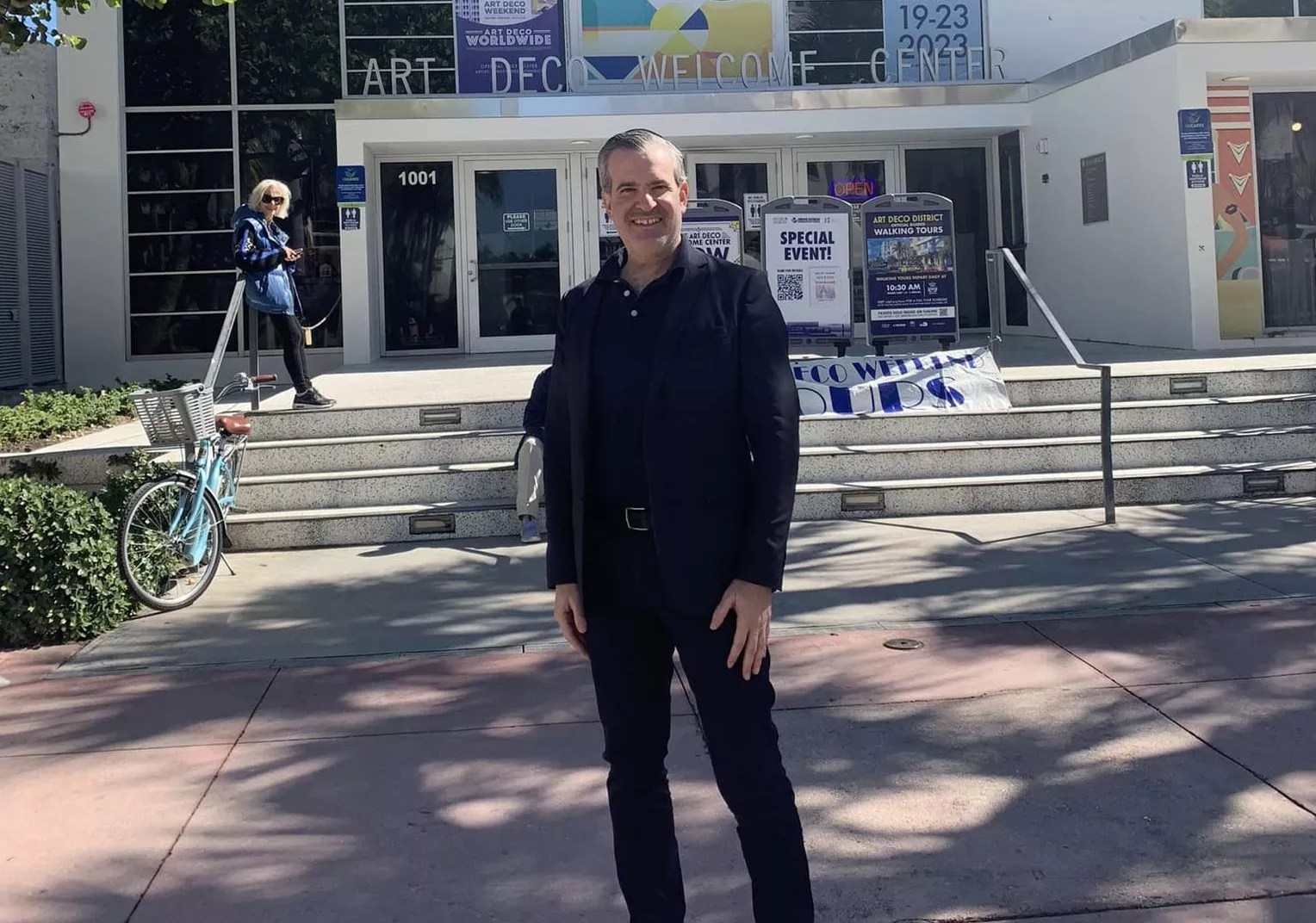 Miami Beach Commissioner Steven Meiner celebrates Art Deco Weekend on Ocean Drive in January 2023.
