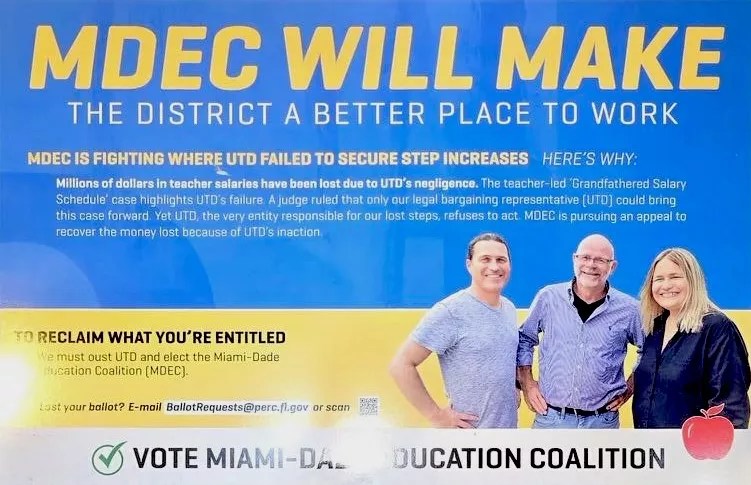 Over the past year, Miami-Dade Public Schools teachers and support staff by the thousands have received a steady torrent of mailers trashing their collective-bargaining unit, United Teachers of Dade (UTD). In a recent flurry of six flyers sent in a single week, a group called the Miami-Dade Education Coalition accused the union of lying about its efforts to fight for higher teacher pay.