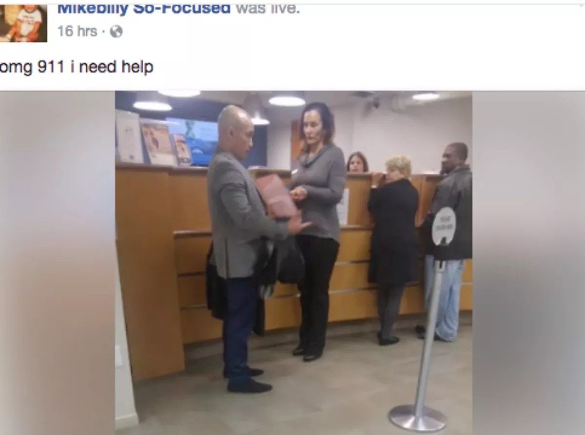 This much is clear: Just before 5 p.m., the Uber driver – who has a Facebook account under the name “Mikebilly So-Focused” – began live-streaming from the lobby of the Brickell credit union. At first, it’s unclear what’s happening. The bald man talks to a manger, while other customers calmly do their business.