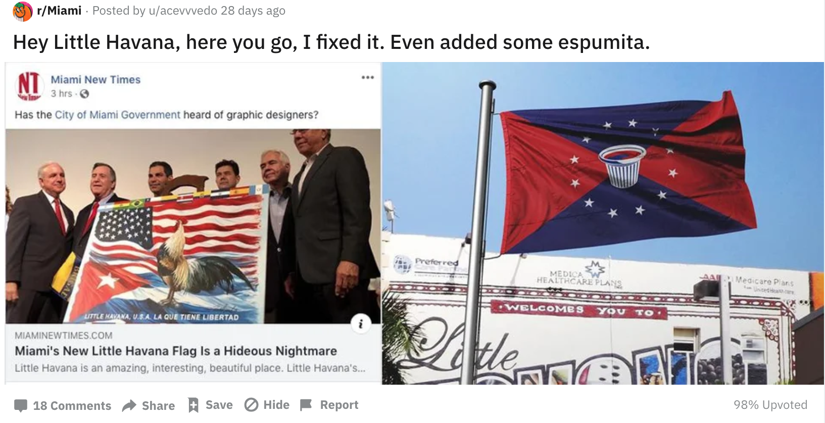 Just make a different damned flag. A kindly Reddit user on r/Miami has done some legwork for people: User u/