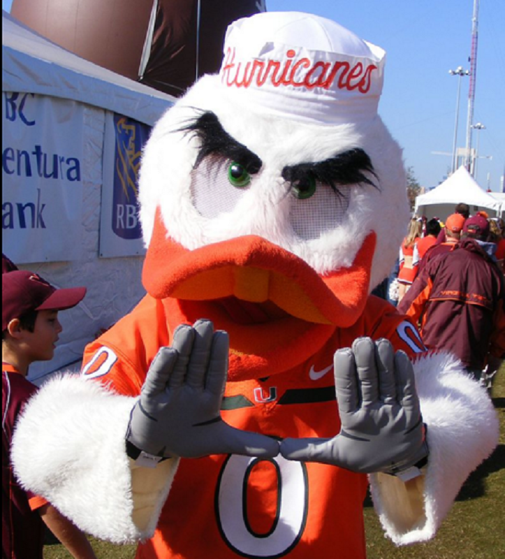 3. Miami Hurricanes’ “Sebastian the Ibis.” Behind this fun-loving, beak-twisting, probably drunk, confusingly sign-language-competent bird is a man who isn’t afraid to punch you in the face if you even think about talking spicy about his Hurricanes. When you break down exactly who Sebastian the Ibis is and what he is capable of, you need to remember this is the same man-bird who was once detained by police for plotting to commit animal cruelty and/or assault on a man dressed as a Native American. Somehow none of this is made up.