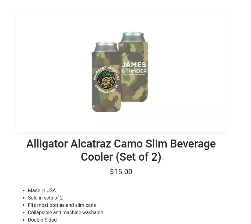 Just in time for the Fourth of July, Uthmeier is also selling “Alligator Alcatraz” beverage coolers. One will surely keep the Florida man’s can of Hulk Hogan’s “Real American Beer” nice and cold.