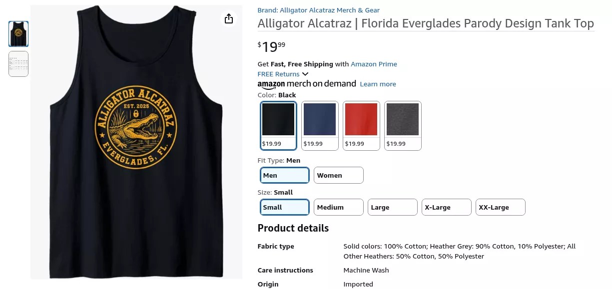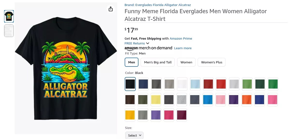 As the Florida GOP, Florida Attorney General James Uthmeier, and other Amazon sellers try to capitalize on the sprawling immigration facility that critics have slammed as cruel and inhumane, here is a roundup of Alligator Alacatraz gear that your neighborhood Florida Man is most likely to buy.