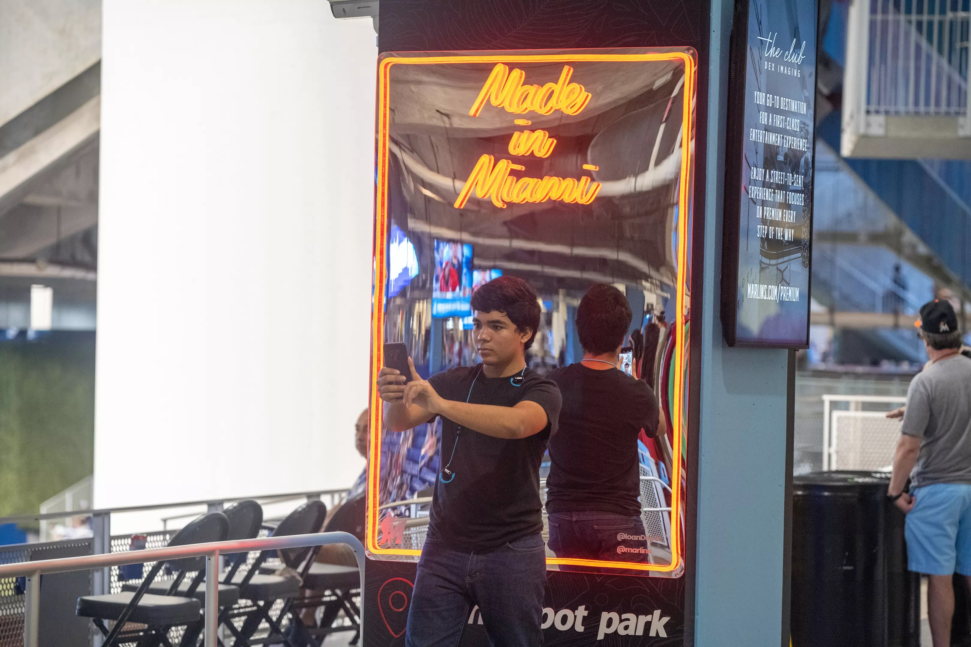 The open-air promenade level is already one of the most out-of-the-ordinary places to watch a game in South Florida, allowing fans to congregate, purchase food and drinks, or just browse the concourse to take in the sights and sounds, without ever losing sight of the action on the field. Now the social stations let fans take Instagram selfies all while missing none of the action on the diamond.