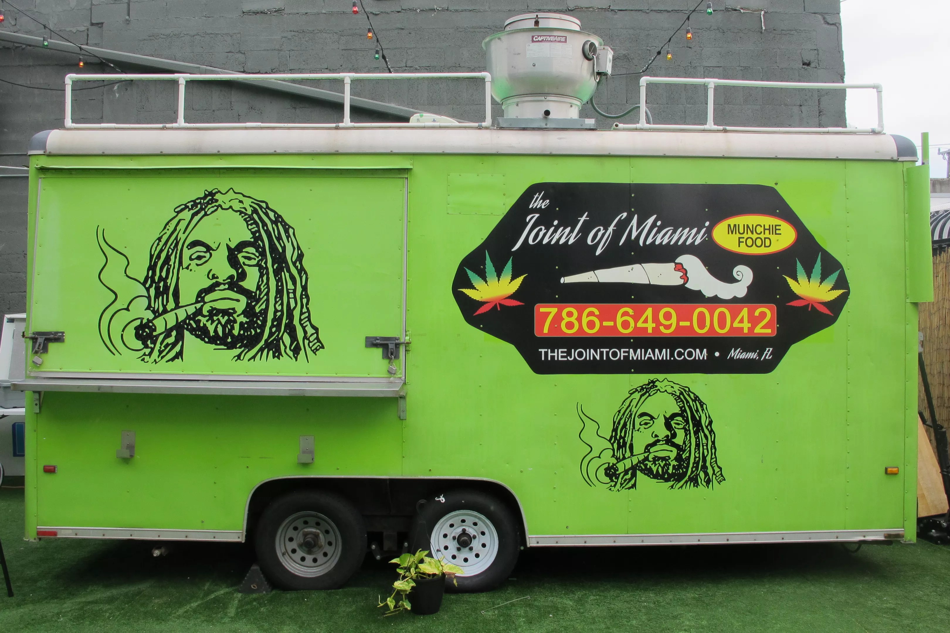 The air is saturated with enough smoke to rival the feel of Miami humidity, and a food truck – aptly named the Munchie Mobile – sits atop fake grass in an outdoor area attached to the back of the venue. The menu has yet to be finalized, but imagine a range of munchie foods from veggie tacos and empanadas to hot dogs and French fries. The Joint also offers a full bar, so you can relax with your drink of choice along with your smoke.