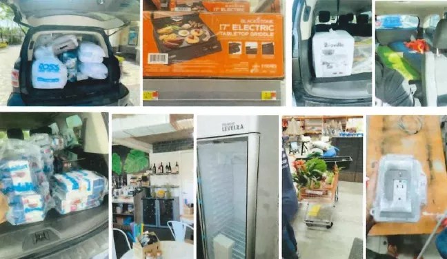 The affidavit states that she later bagged Christmas cards, peppermint candy canes, a slow cooker, and New Year’s Eve supplies at a Dania Beach Walmart in early December 2022 – and hit a second Walmart later that day in Miami to buy 11 bottles of wine, holiday gift paper, clothing, and water for a total of $308.