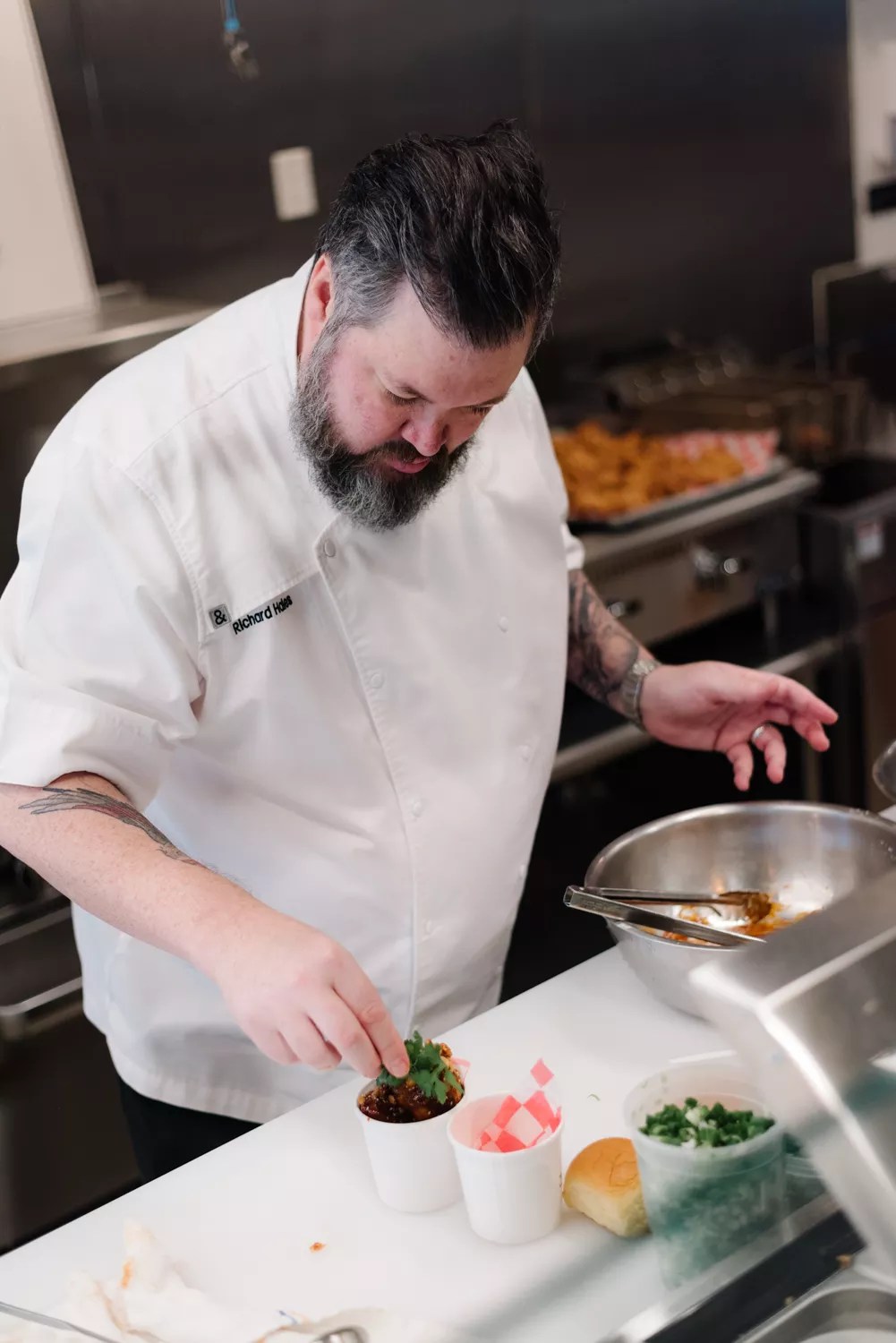 About three weeks after surgery, he was back in his chef’s whites dishing out Korean fried chicken at a block party for the Little Haiti food hall the Citadel, which houses his latest Sakaya Kitchen outpost. Less than two weeks later, he was on a plane bound for Atlanta, where he and a small crew served 1,200 pieces of fried chicken at a Super Bowl tailgate.