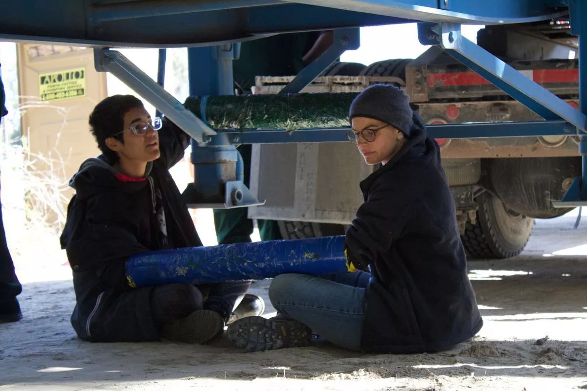 Protesters have gathered in North Florida, including Kaithleen Hernandez (left) and Alexa Oropesa, who locked themselves to a construction truck on Martin Luther King Jr. Day.