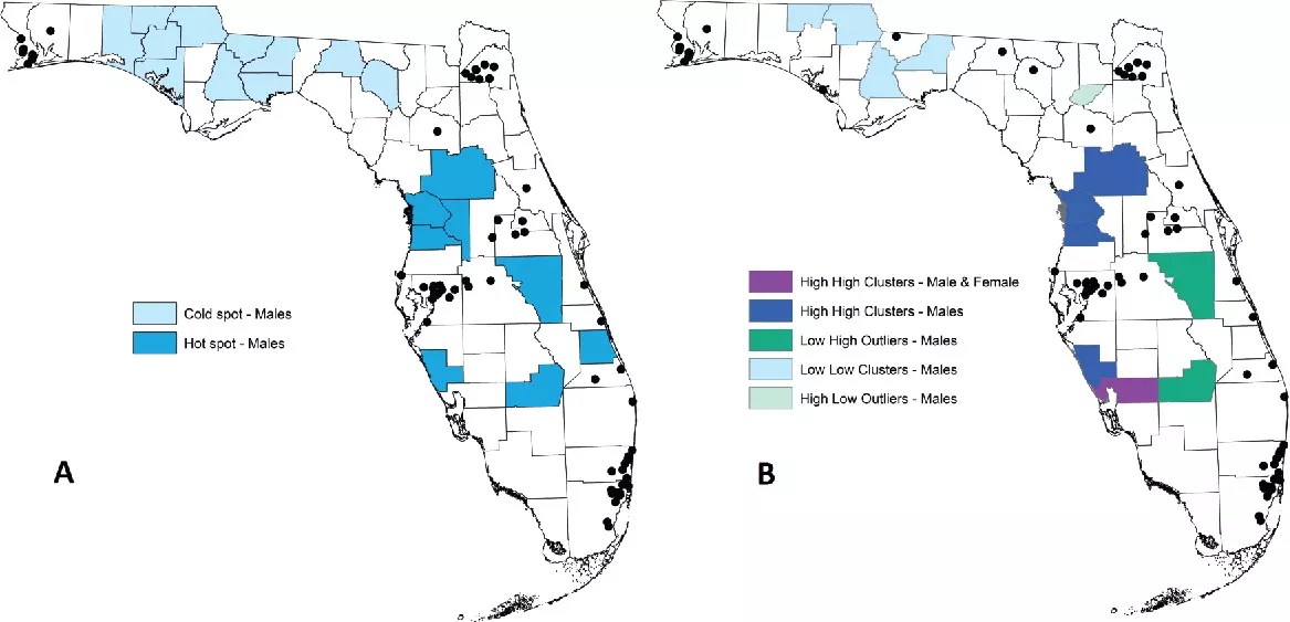 “In the time period we studied, there was a huge influx of population,” she says. “And not only that, the population was mainly foreign-born Hispanic in ethnicity. So what we thought might be happening in South Florida is that influx of population might be washing out the clusters.”