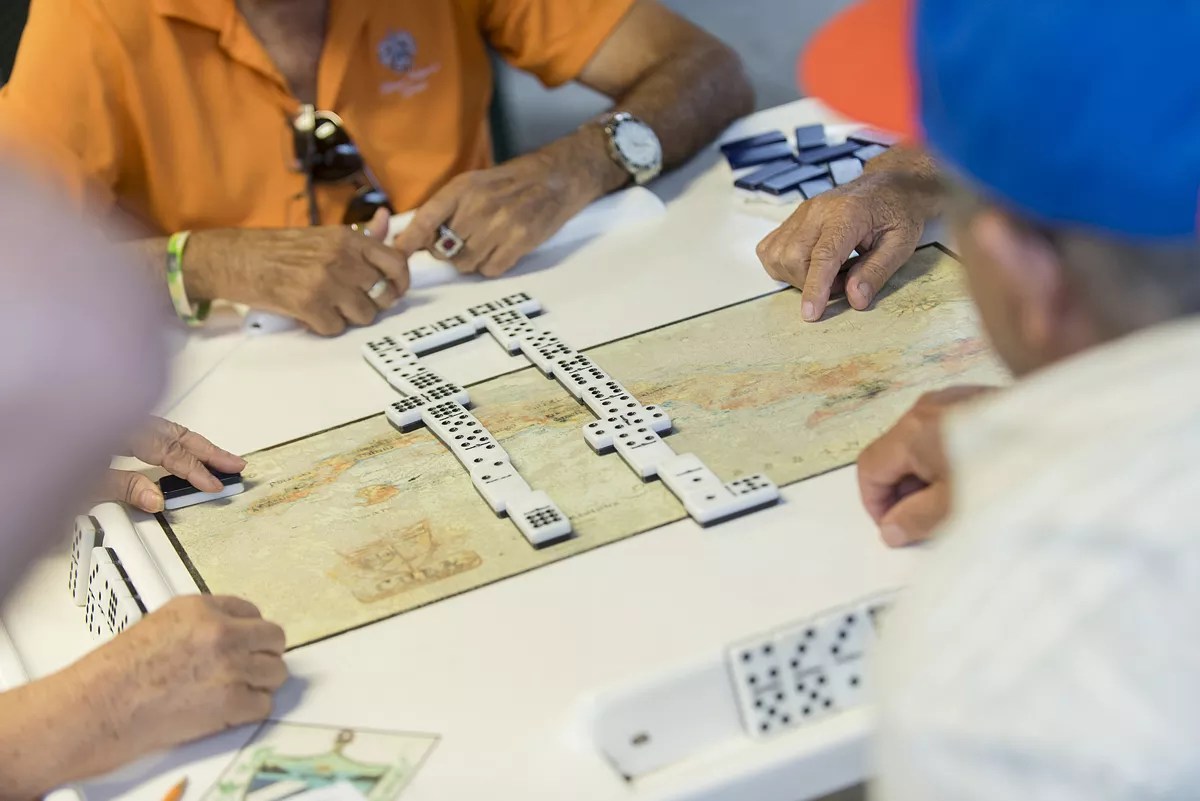 Domino players at work in Calle Ocho’s Máximo Gómez Park.