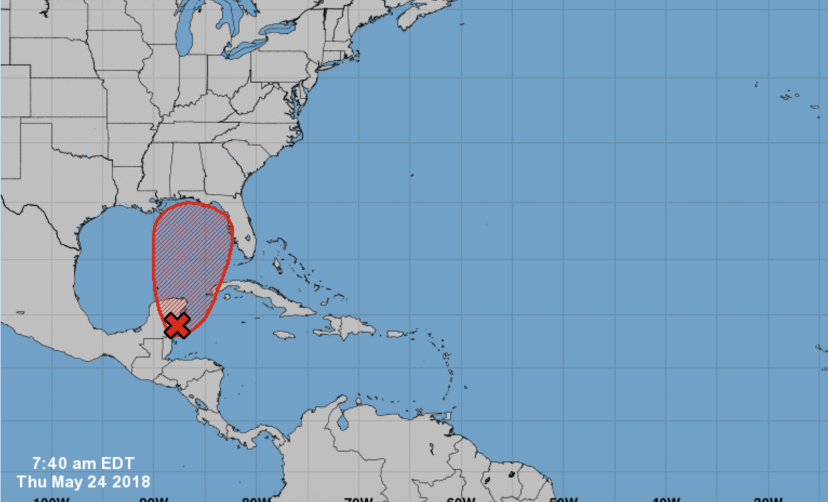 The storm is still a “broad, stationary surface low-pressure system” just off the Yucatán, the National Hurricane Center says. But “gradual development of this system is expected during the next couple of days as it drifts northward” and gets better organized over the warm waters in the Gulf of Mexico.