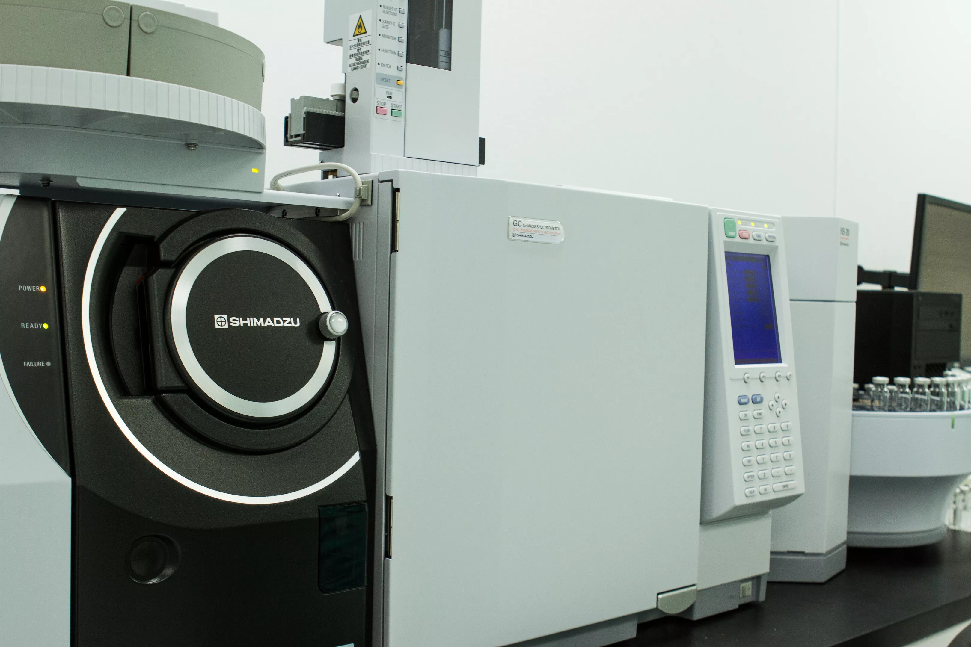 A Shimadzu gas chromatography mass spectrometer, one of the many top-of-the-line pieces of technology in the lab.