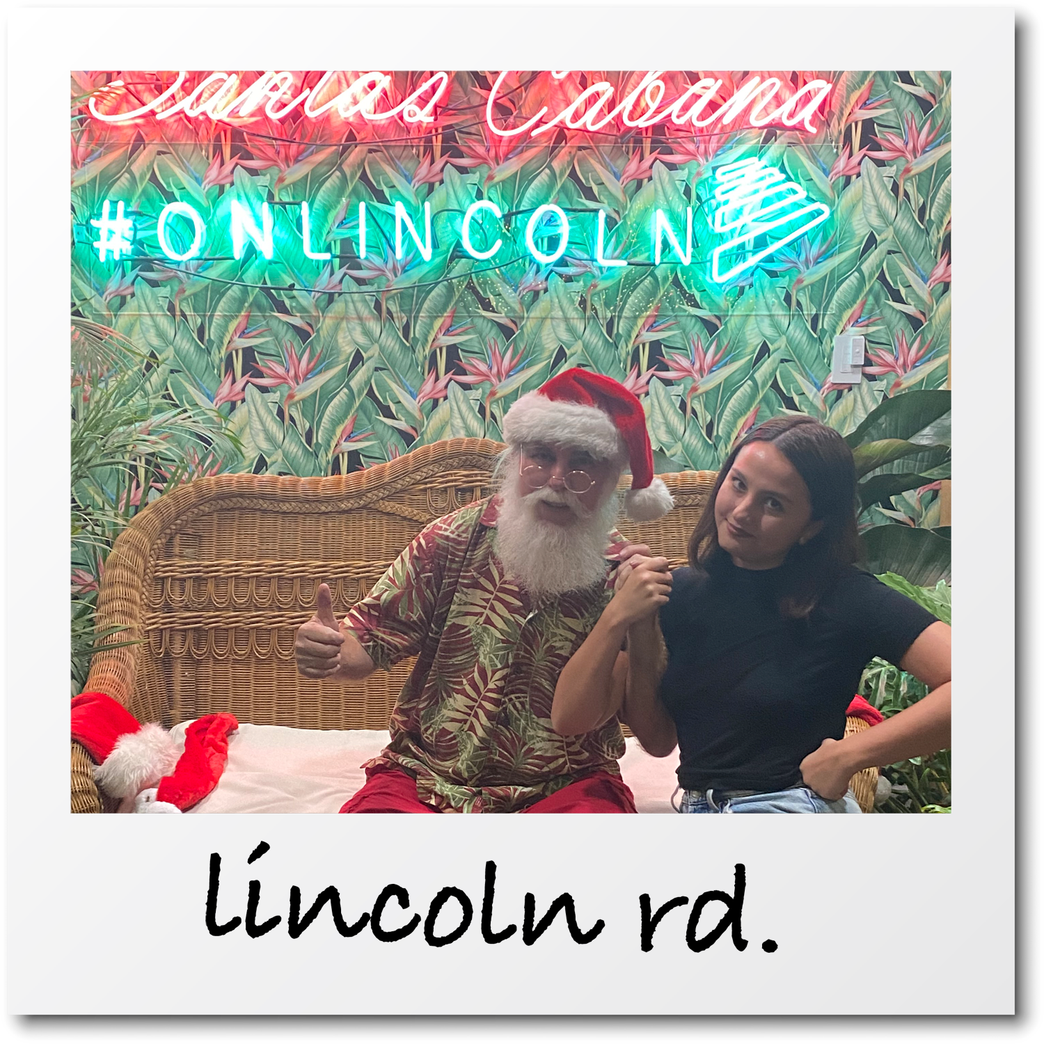 Sunday, 7:30 p.m.: I’ve taken photos with eight Santas (nine if you count my solo snap at Mall of the Americas), and I’m pretty certain I’ve seen it all, from the tantrums and the tears to the advanced line-skipping tactics. But the shenanigans at Santa’s Cabana cause even a seasoned photographic Santa subject such as moi to do a double-take. Fully expecting to pose with Saint Nick in front of yet another frosted backdrop, I seem to have fallen into another dimension. Dressed in a tropical shirt and flip-flops, Santa looks like he’s chillin’ after a long day catching waves. “I’m Tropical Santa,” the bearded dude tells me, “or, in Spanish, Santa Tropical.” Passersby who spot the free photo op quickly line up outside his greenery-festooned hut, located opposite the Forever 21 outpost on Lincoln Road. Some of them are child-free millennials like me. Some appear to have indulged in enough wine at dinner to find Tropical Santa even more amusing than I find him. A man in a blue polo shirt that reads, “Lincoln Road Ambassador,” is tasked with taking photos on guests’ phones, like a sentient selfie stick. “Oh, I’ll be here all night,” he says with a big smile as he snaps a few shots of an Argentine couple. I ask Santa if he’ll take a hardstyle photo with me, and he agrees even though I can tell he doesn’t know what that means. I go down on one knee, lock arms with Santa, and tell him not to laugh or smile. The command clearly makes him uncomfortable, and at the last instant, he flings a thumbsup.