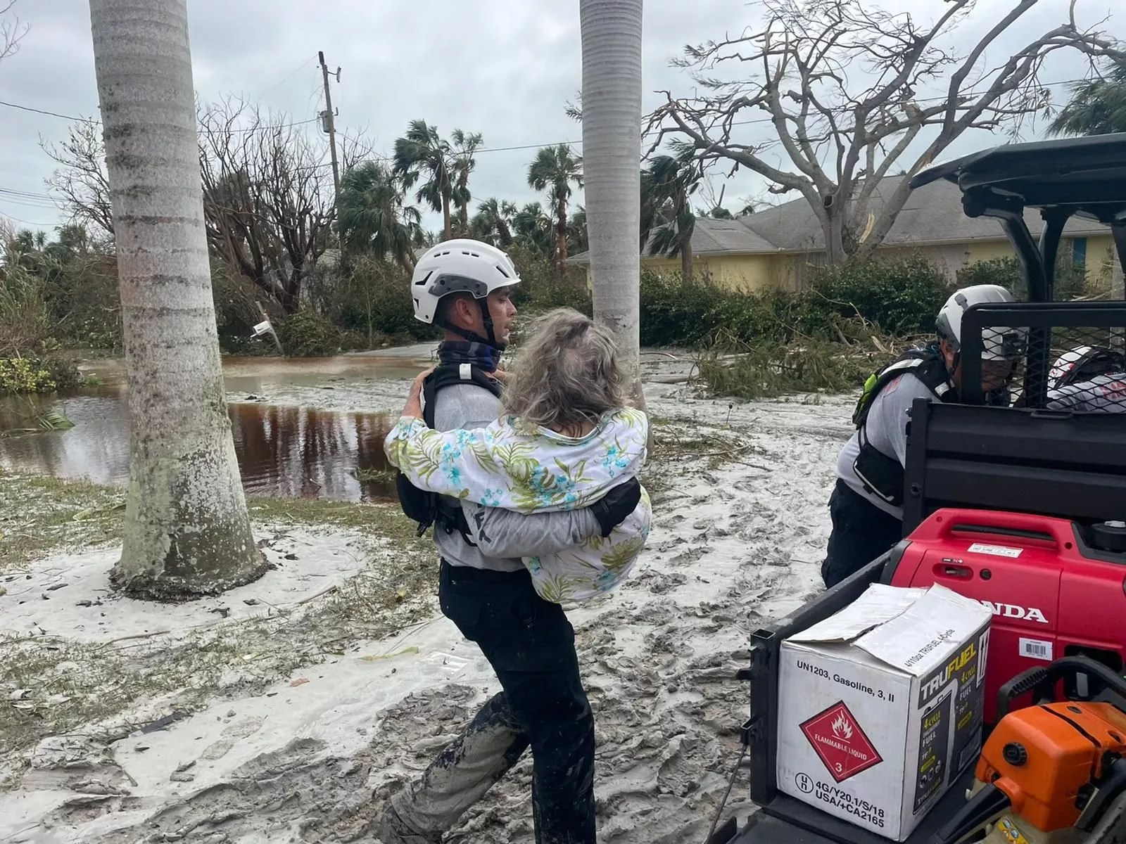 Members of Florida Task Force 1 rescue stranded residents from barrier islands on Florida’s west coast on September 30, 2022, after the region was decimated by Hurricane Ian’s storm surge.