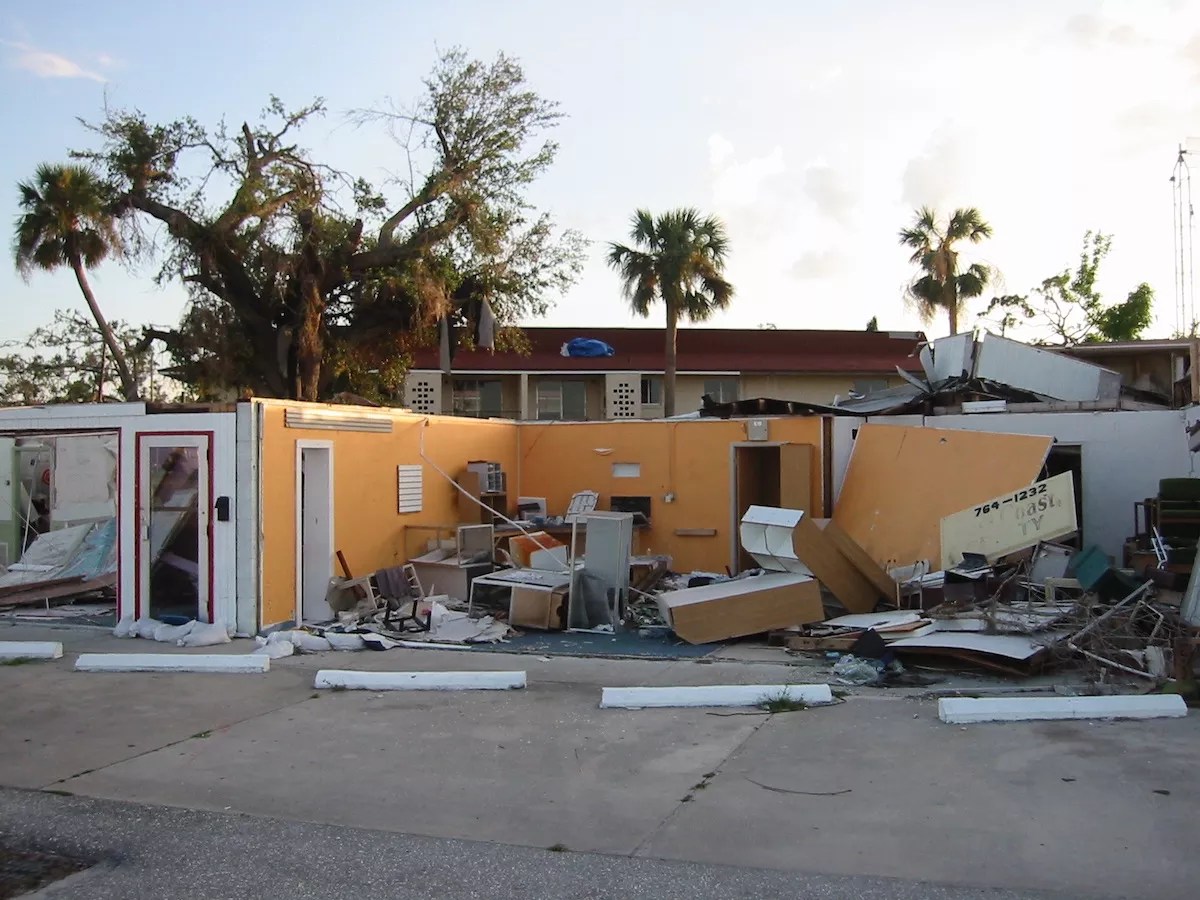 The remains of a strip mall in Punta Gorda, Florida post-Charley.