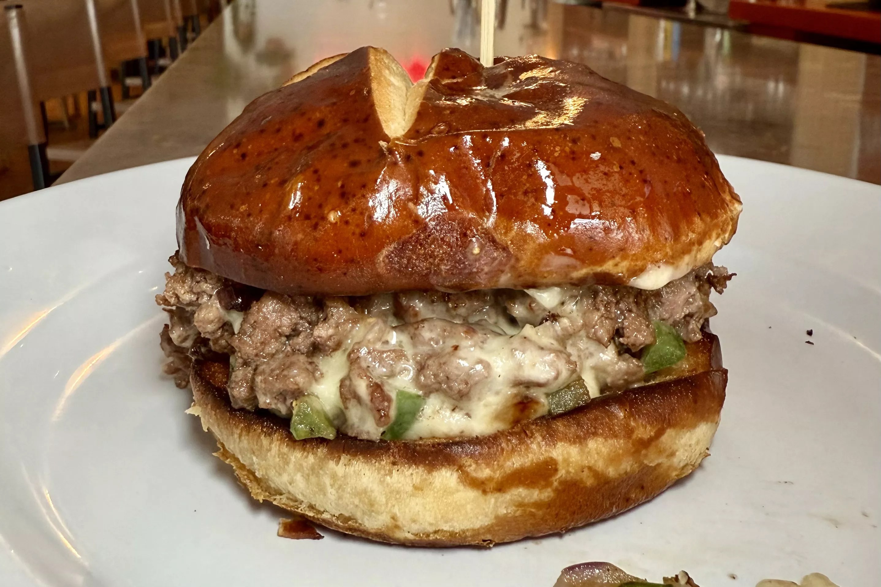 emmysquaredpizza.com Everyone talks about the award-winning “Le Big Matt” at Emmy Squared, but the “Chopped Cheese” stole my burger-loving heart. A nod to New York City street food, it’s made with chopped grass-fed Black Angus beef with American cheese, red onion, bell peppers, ketchup, and pickles on a toasted pretzel bun. Yes, another regional style and another pretzel bun, but it’s too damn good to leave off the list. I even made a “Chopped Cheese & Chill” Spotify playlist in its honor.