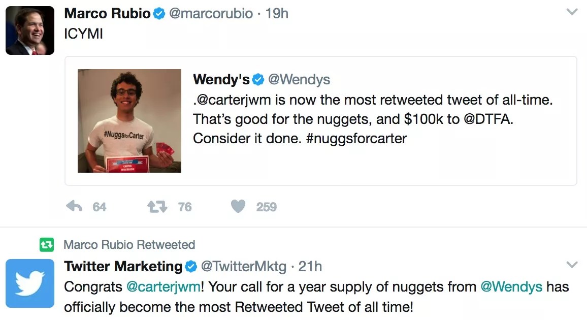 But maybe we’re being unfair. Maybe Rubio was ambushed by ABC and just hadn’t had time to put a coherent thought together on the Comey situation. Let’s check in on his most recent tweets to see if he has shared any hot takes on the president’s moves.
