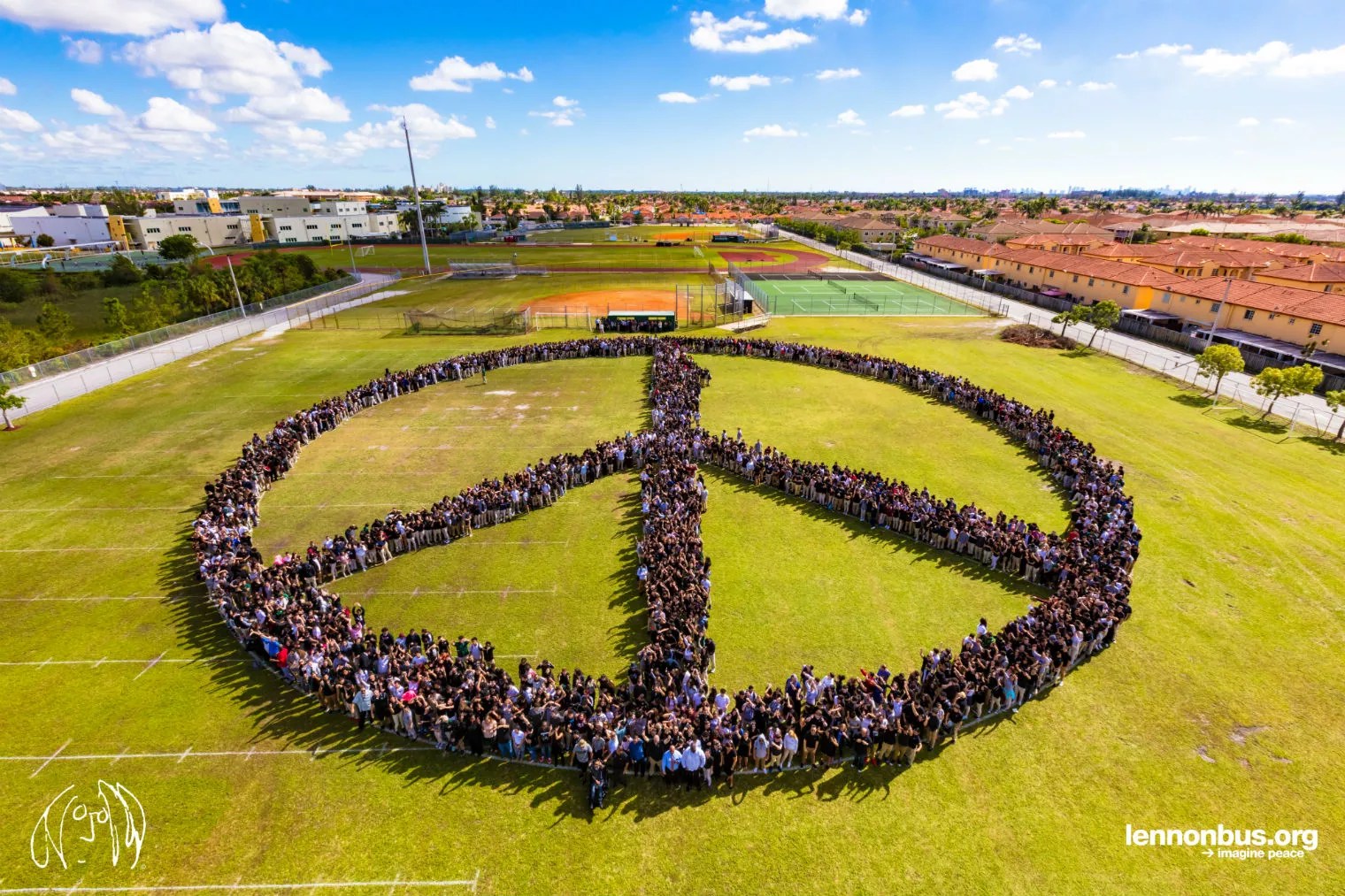 Just hours after President Donald Trump threatened war on North Korea, 3,000 people formed a huge human peace sign at Hialeah Gardens High School.