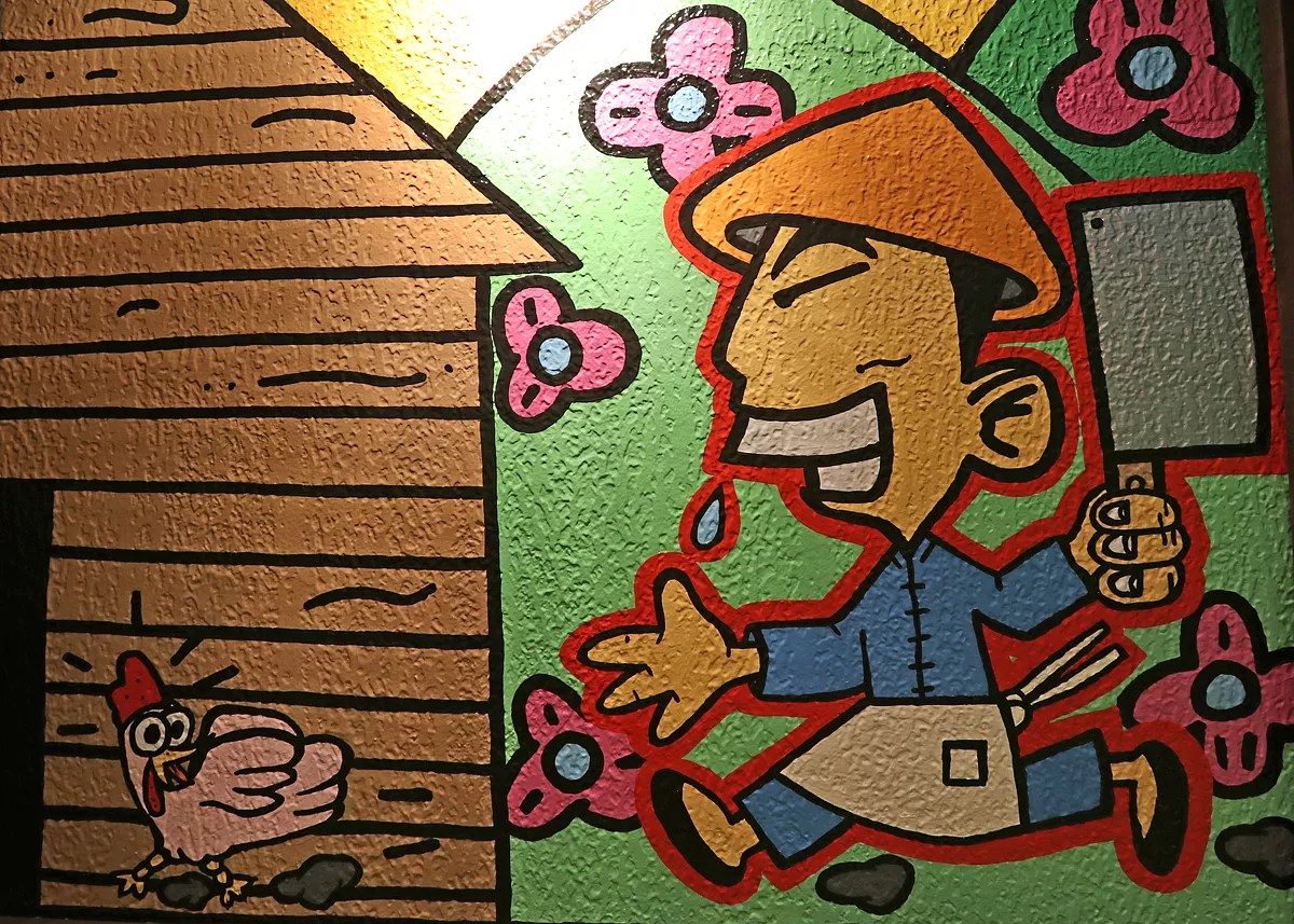 Lee says that since she opened the restaurant, she’s had many conversations her with guests, Asian and otherwise. But no one had brought up the characters on the mural or menus before. She was shocked that I found them offensive. “I have a lot of Asian guests. We never talk about that, just about the food, life, how’s your country,” she says. “It’s so surprising… This is just a character. If you see a cartoon on South Park, the Asian characters have a round face, hat, and eyes like that. That’s more racist than this. A cartoon is a cartoon. It was just a concept. It’s not like I’m racist, and I’m Korean.”