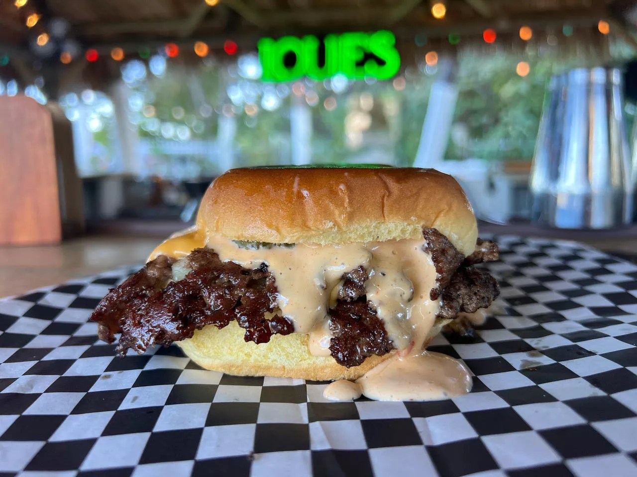 palmhousemiami.comA newcomer to this list, and a strong contender, is the smash burger from Louie’s at Palm House in Miami Beach. What makes this burger so special? Three things: Chef Louie Estrada’s “Louie’s Special” truffle sauce, the perfect Maillard reaction with the patty’s perfectly dark and crispy edges, and the fact that this restaurant is located mere steps from the ocean under a tiki hut. Although it may be a trek for mainlanders, for those who live in Miami Beach, Louie’s is the best smash burger on the island, hands down.