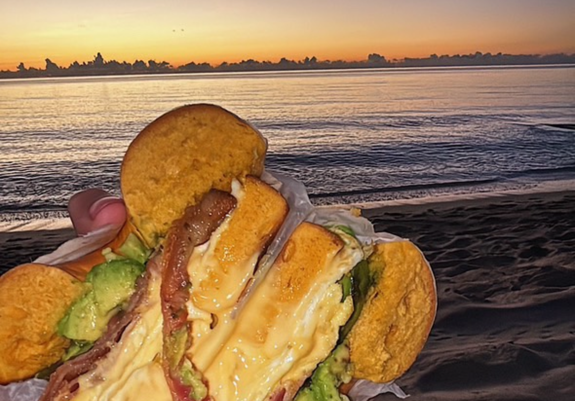 For local foodie Victoria Puzzo (@torissweetspot), who is originally from Long Island, the hype over the bagel spot was worth waking up at 4 a.m. to score a spot as one of the first in line. “I discovered H&H’s grand opening through social media and followed each post leading up to the big day. I knew I had to be one of the first to try these New York bagels,” she proudly says. “Once the doors opened at 6 a.m., I received my order and enjoyed it [while] watching the sunrise on the beach. Eating bagels and spending time at the beach are my two favorite things to do back at home in New York, so, this experience brought back a taste of home. I ordered the classic ‘NY Bacon, Egg & Cheese’ on an egg bagel, and it did not disappoint.”