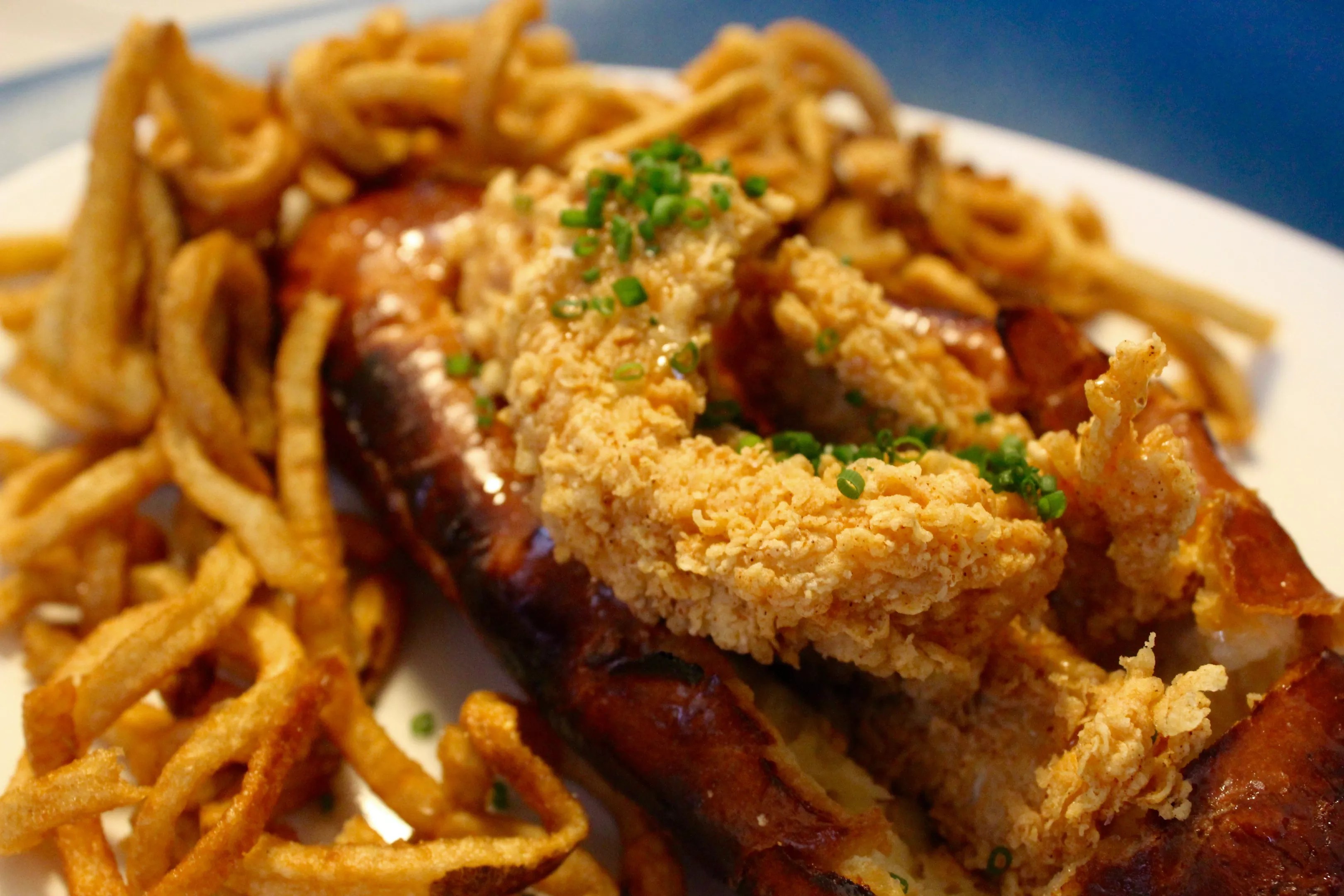 Those craving a mashup of sweet and savory should opt for the French fried chicken toast ($16). Crunchy chicken fingers are stuffed inside a half-shell of crisp brioche bread that’s dipped in a sweet egg batter and fried. Miso-maple syrup is infused within the bread and chicken during prep, and extra syrup is served alongside.