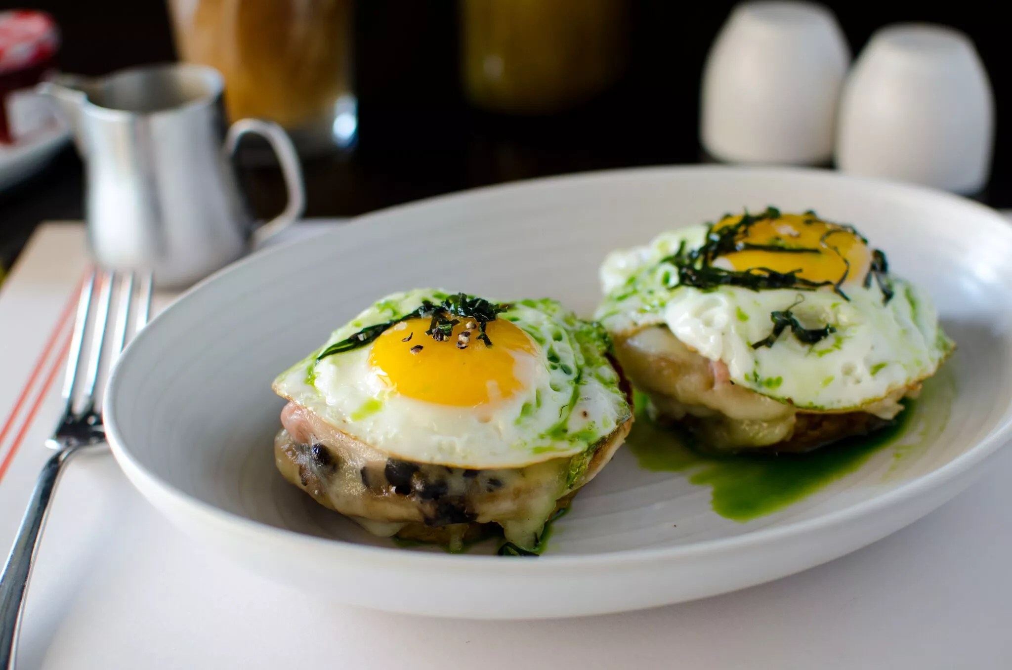 Try something that’s fit for both breakfast and lunch: Cuban molletes ($17). Similar to eggs Benedict, the dish starts with two toasted English muffins and tops them with black beans, Swiss cheese, ham, and mashed sweet plantains. Each is then crowned with a fried egg and drizzled in pickled mojo sauce instead of the traditional hollandaise.